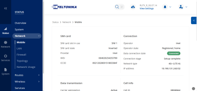 Pour vérifier l’état de la connexion, allez dans : Status » Network » Mobile